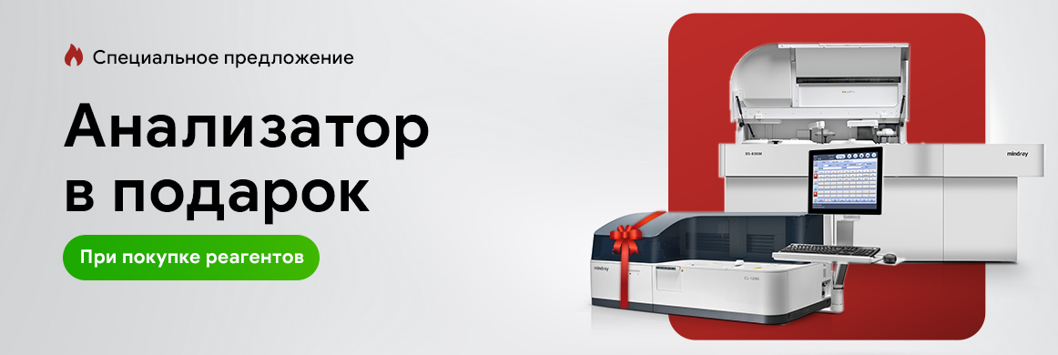 * При заключении реагентного контракта на сумму, указанную в акции покупателю передается в собственность анализатор за 0 рублей. Анализатор может быть предоставлен из наличия на складе или под заказ, условия уточняются при оформлении контракта на реагенты.