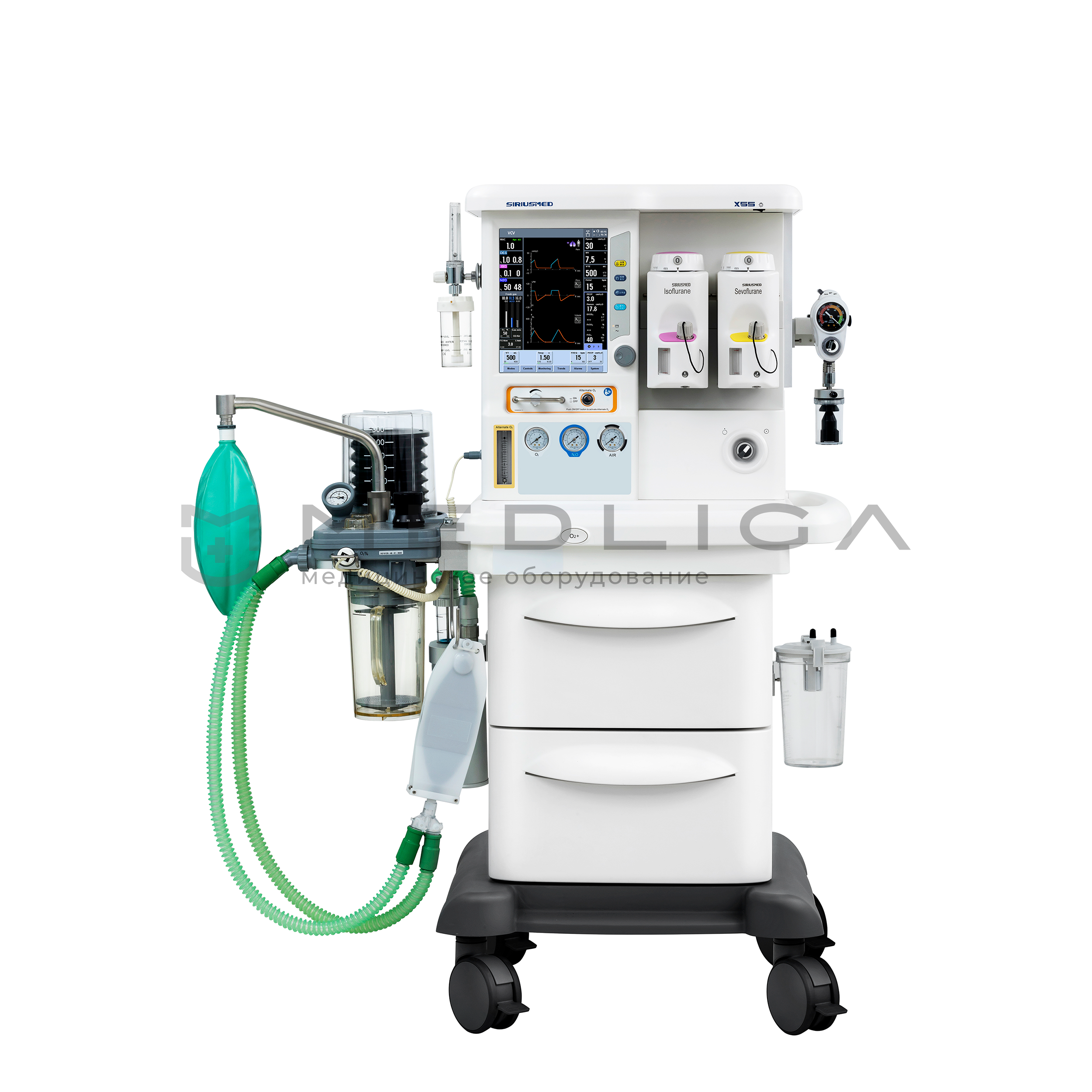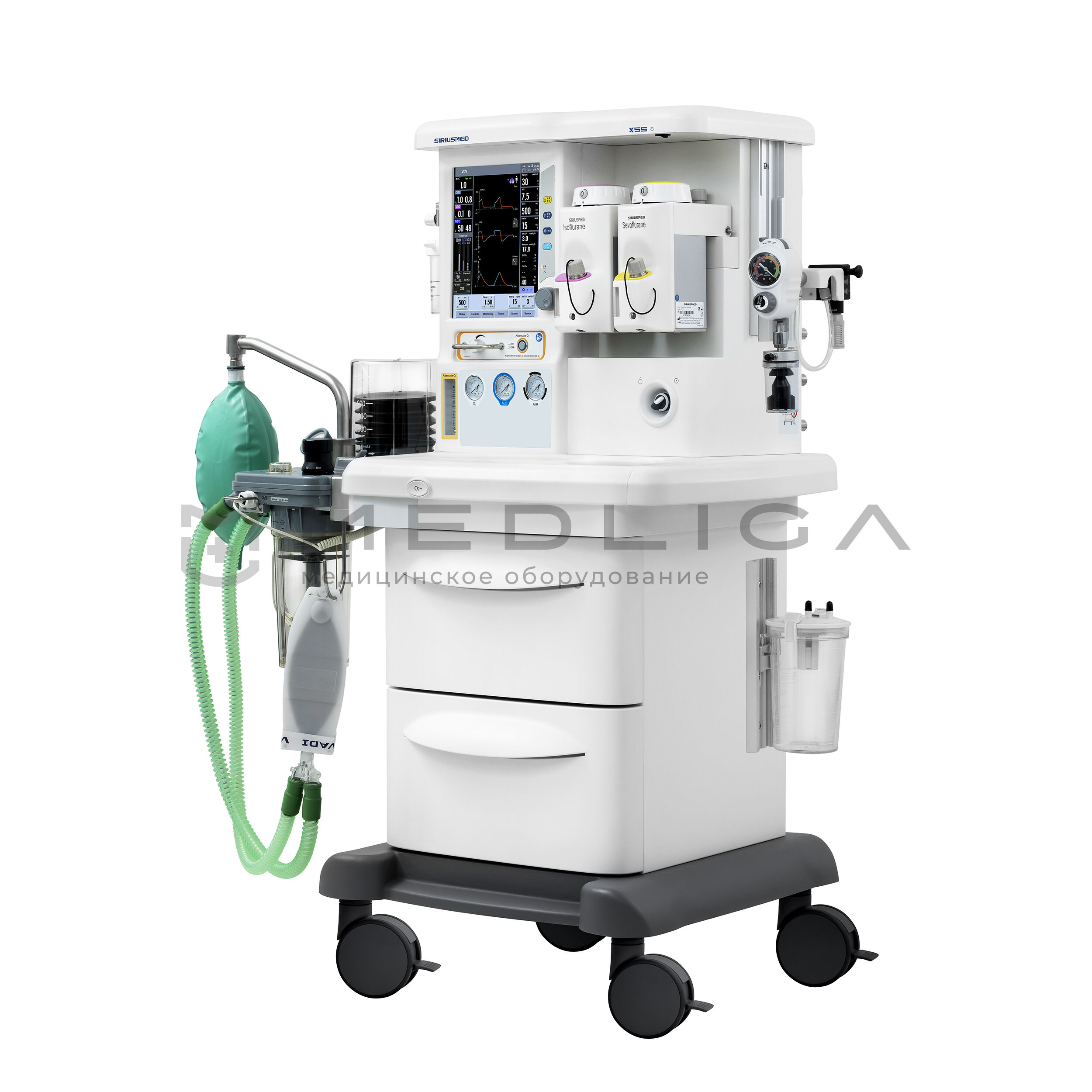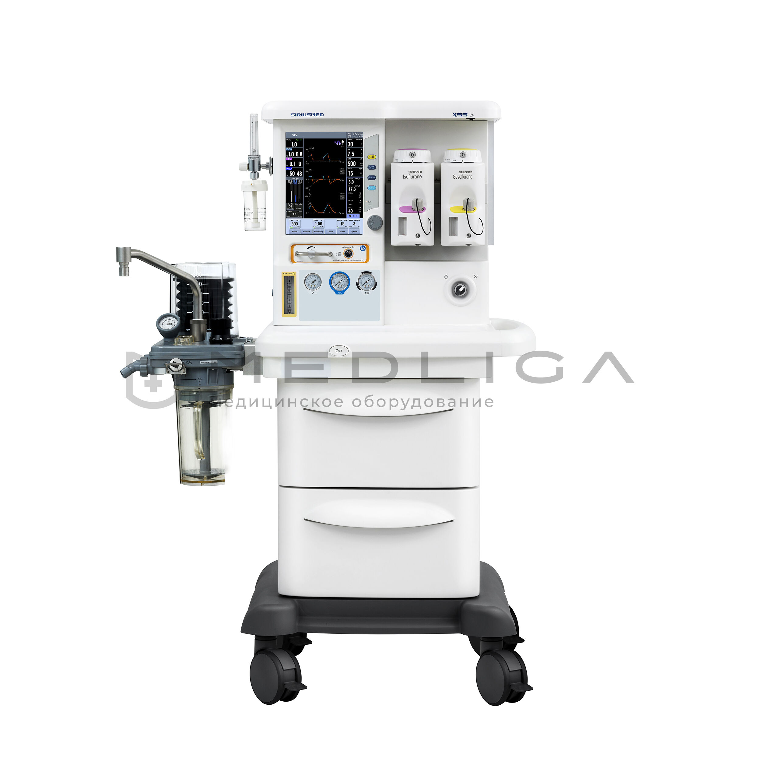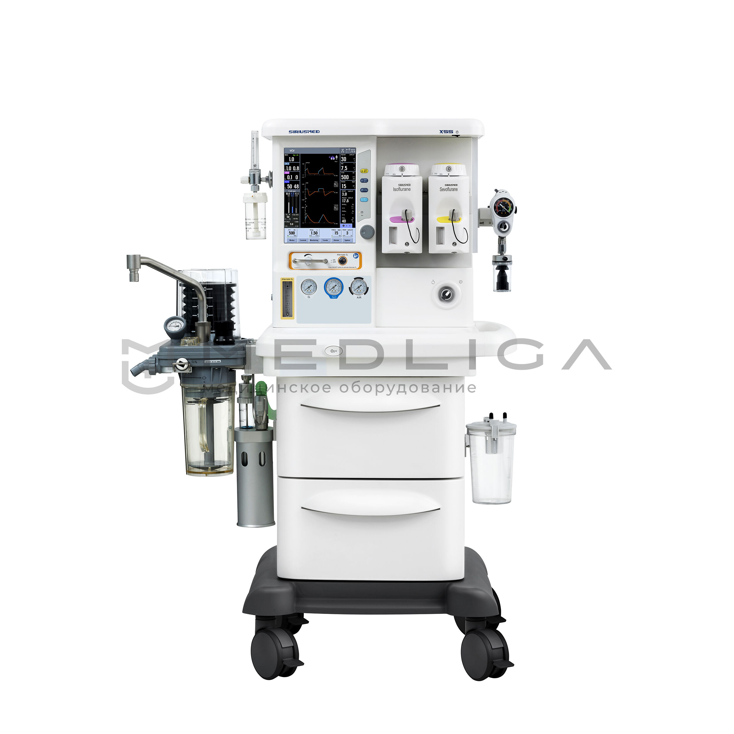 Аппарат наркозно-дыхательный Maja Х55 с электронными ротаметрами/смесителем и мультигазовым мониторингом. Для всех групп пациентов. Работа по полузакрытому, закрытому и полуоткрытому контуру.