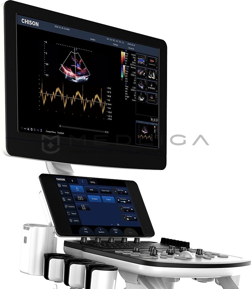 - Расширенный кардиопакет: поддержка взрослого и педиатрического секторного фазированного датчика постоянно-волнового и тканевого допплера, цветного М-режима, кардиологических измерений, функция стресс-эхо и модуль ЭКГ;