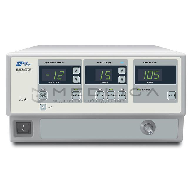 Инсуффлятор без нагревателя газа И001 ИНС-001-"ФОТЕК" предназначен для создания и автоматического поддержания заранее заданного давления углекислого газа во внутренних полостях пациента относительно давления окружающего воздуха (абдоминальное давление) при различных лапароскопических вмешательствах.
