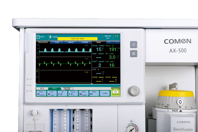 Модульный наркозно-дыхательный аппарат Comen AX500 отлично показал себя в ходе хирургических операций, в эндоскопии и при родах: он работает в пяти режимах и имеет гибкие настройки. Интеллектуальные алгоритмы управления позволяют контролировать данные о дыхании пациента, быстро подбирать оптимальные параметры и корректировать их. А 8,4" сенсорный экран и память на 2000 событий обеспечивают удобное управление информацией. Наркозный аппарат AX400 можно дооснастить дополнительными модулями, такими как расходомер для оксигенотерапии, второй внешний выход ACGO, BIS и AG и т. д. Это позволяет использовать его в самых разных медицинских учреждениях и для разных целей: в операционных, при диагностике с помощью эндоскопа, при сложных родах и т. д.