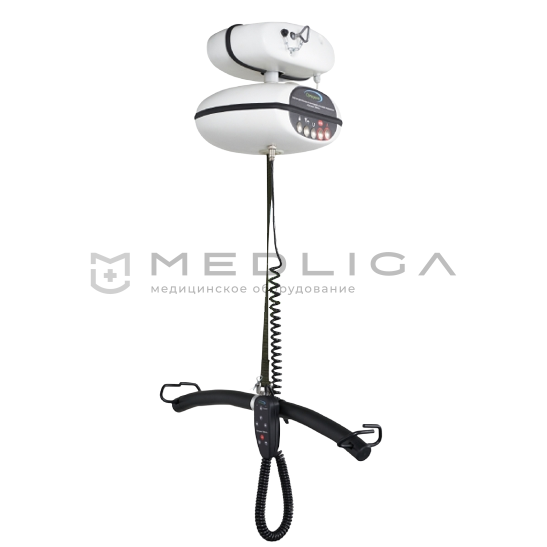 В условиях лечебно-профилактических учреждений. Рельсовая система крепится на потолке и за счет своей конструкции охватывает всю площадь помещения. Возможно перемещение пациентов через дверные проемы между помещениями. Система в общем виде состоит из подъемного блока, пульта управления, зарядного устройства, набора рельсов, потолочных креплений, системы опоры пациента и комплект жилетов.