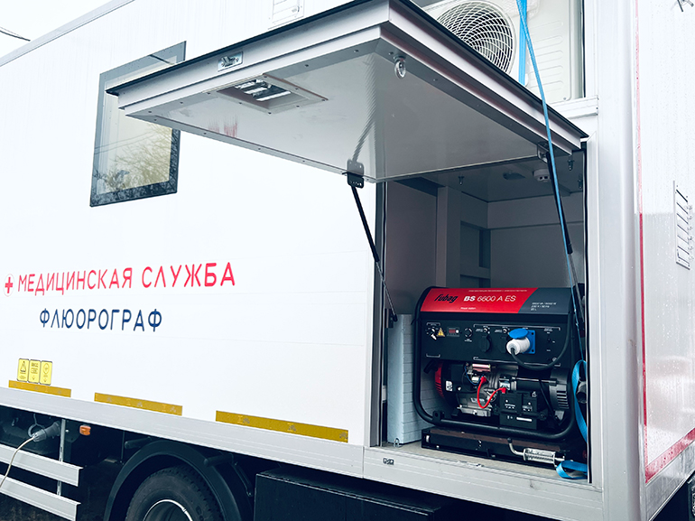 Передвижной флюорографический кабинет выпускается в обращении на основании регистрационного удостоверения № РЗН 2024/22684. Мобильный лечебно-профилактический модуль МЛПМ «РЕНТГЕН-ДИАГНОСТИКА», исполнение Флюорограф, изготавливается на базе многосекционного изотермического фургона на шасси транспортного средства — прицепа или грузового автомобиля, в том числе внедорожного, полноприводного. В комплексе устроены рентген процедурная, помещение рентгенлаборанта, коридор и технической помещение. При необходимости комплекс оснащается санитарным помещением. Передвижной медицинский комплекс для флюорографии соответствует санитарным правилам и нормам «Гигиенические требования к устройству и эксплуатации рентгеновских кабинетов, аппаратов и проведению рентгенологических исследований. СанПиН 2.6.1.1192-03».