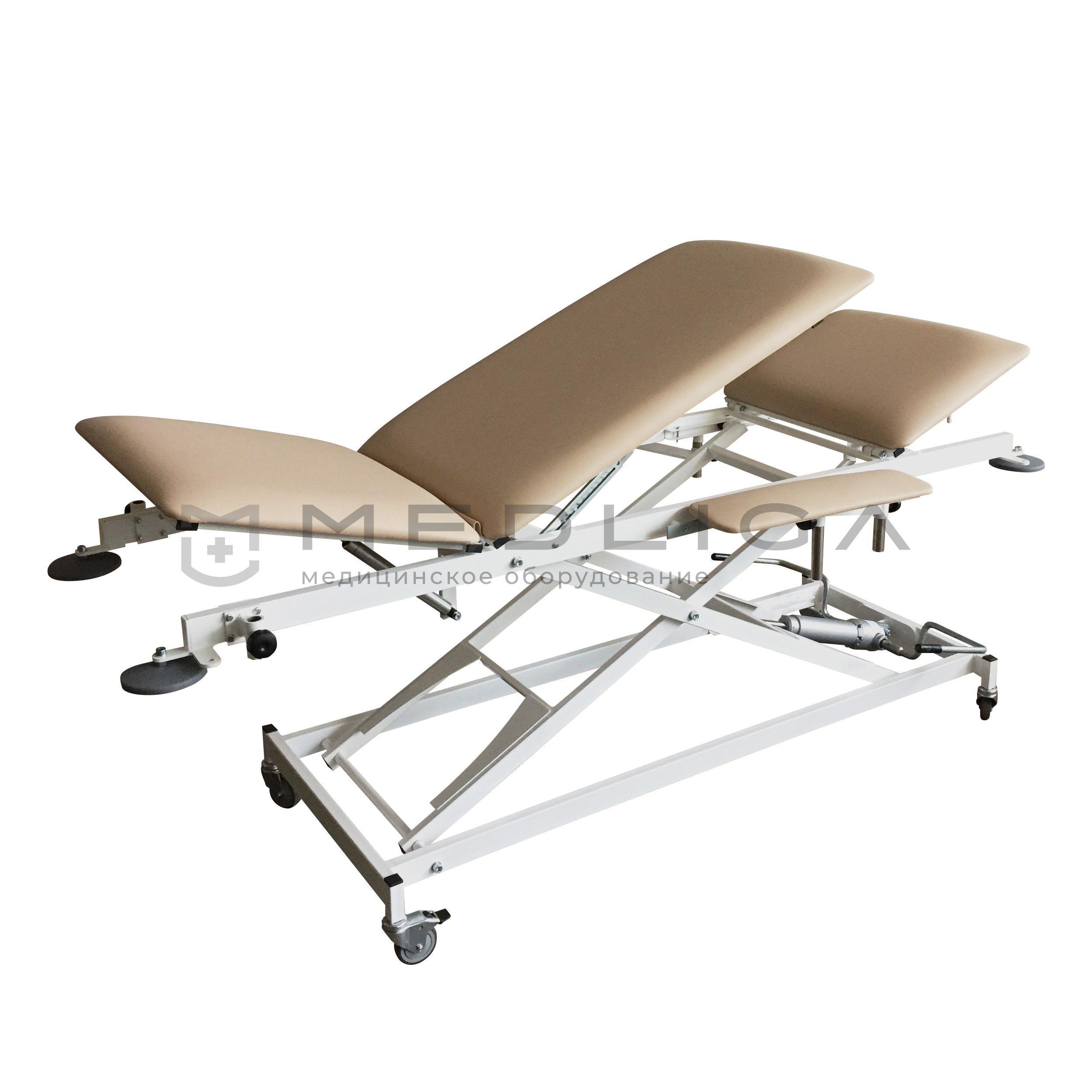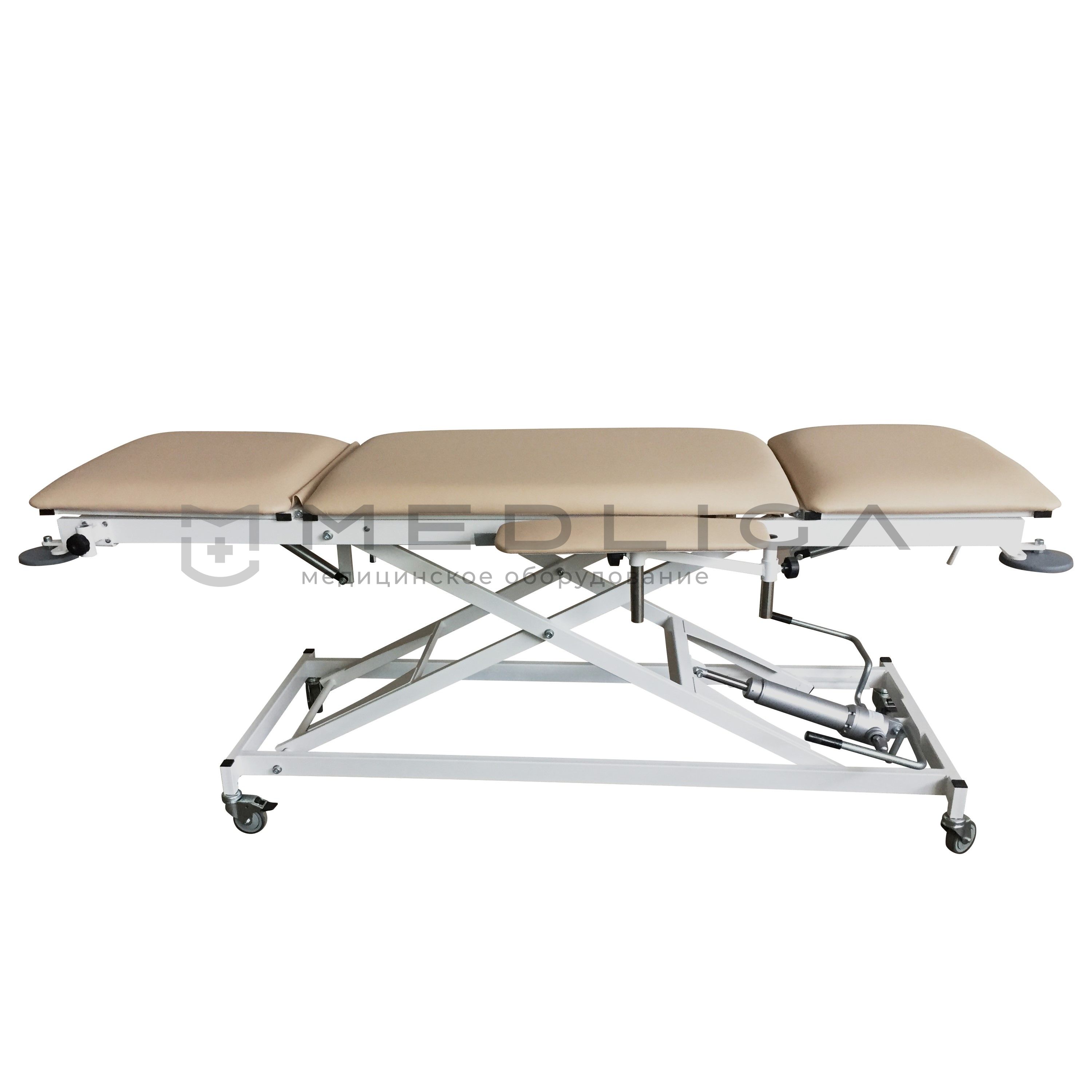 Стол для перевязок и процедур СППГ VLANA подходит для использования в клиниках и больницах. Он состоит из каркаса, трехсекционного ложа, подлокотников и механизмов для изменения высоты, угла наклона секций.